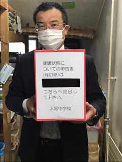 ◯「健康状態の申告書」を入れる箱を本部席横に用意しておきますので、提出の協力をお願いいたします。