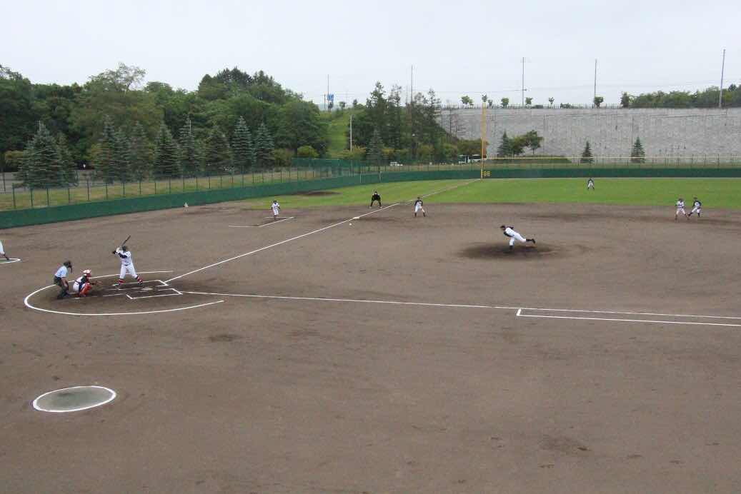 野球は、ここ幕別町営球場で、初戦を帯広七中・川西中・清川中連合チームと対戦しました。